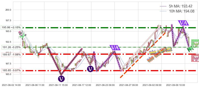 ♘ 阻力价格位195.86,可信任强度92.41%,距离最后交易2021-09-09 14:00形成的收盘价格191.74相差 +2.15%