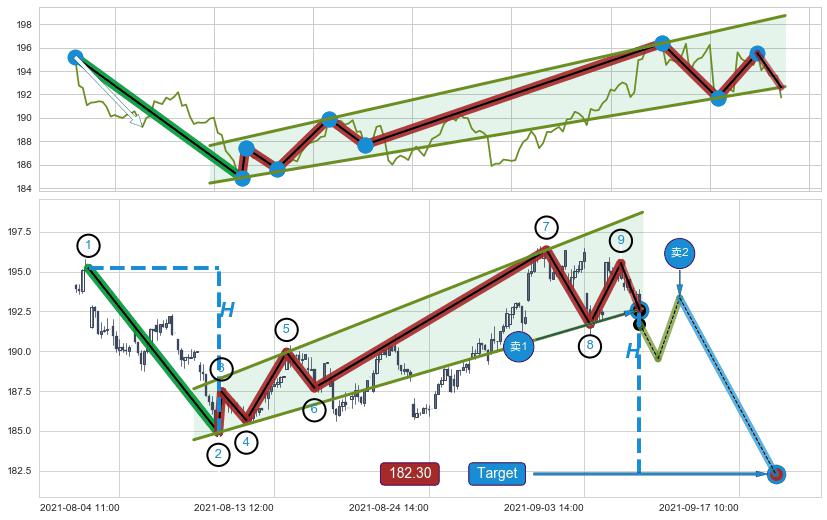 ➣ 最小中继整理跌幅→𝐇: 10.32 (𝐇旗杆的长度:旗杆起点→顶点)