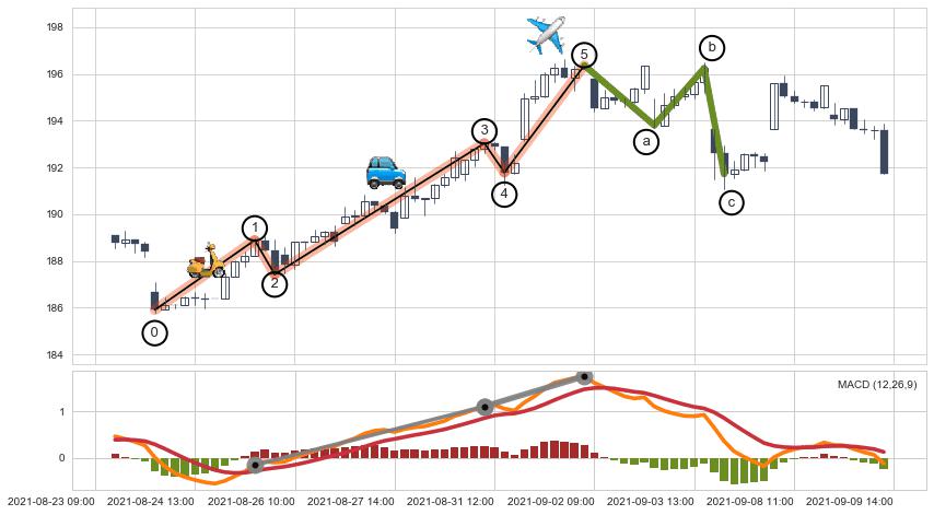 ➣ 波浪理论:猜想达到c点后小回调终止反转上涨 → 上涨 → 【拐点】临近 → 阶段均值回复结束后继续大周期趋势跟踪