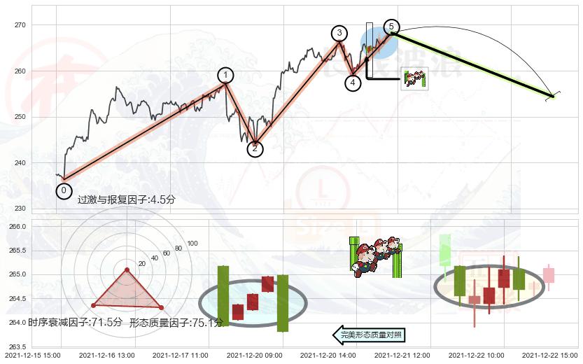 ➢ 🕰 价格走势在2021-12-21 00:00:00至2021-12-22 00:00:00期间形成顶部尽头线(下山虎),残存影响值:-4.64