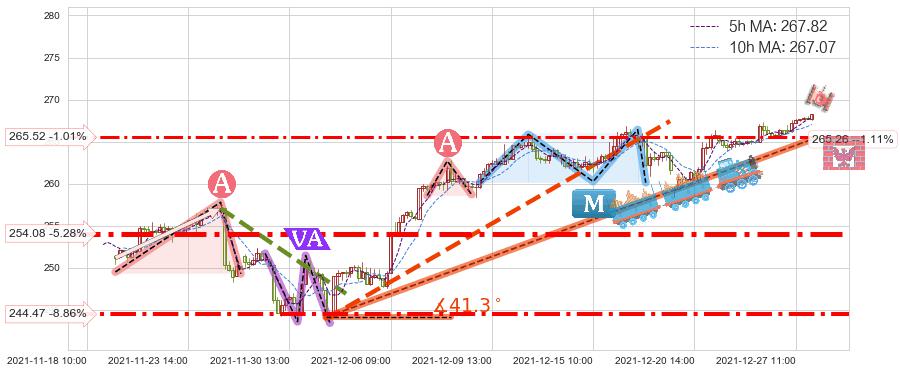 ➣ 预测:2022-01-05 11:00,【试探支撑】稳定目前上涨趋势的前提下,预测价格:274.43