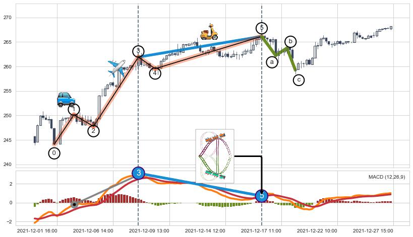 ➢ 波浪理论属【短级别信号事件】缠论中枢点属【长级别信号事件】长短周期组合信号事件, 短长事件长度比30.10%