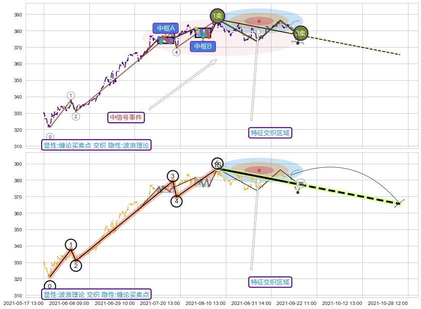 ➣ 缠论买卖点:上升缠:临近3卖-猜想击穿破位3卖后延续下跌趋势(大周期趋势均值回复后小周期持续趋势跟踪)
