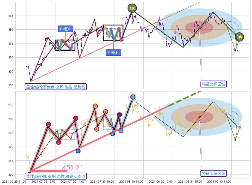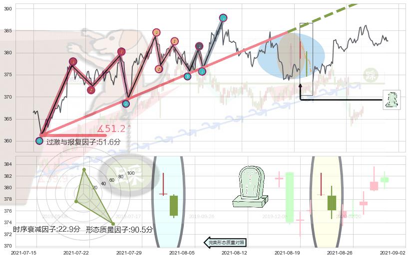 ➣ 2021-06-30 12:00-2021-08-19 11:00上升趋势存在反转[风险],其原上升趋势的支撑位(394.19)已破位[强阻力信号],原上升趋势角度: 51.2˚
