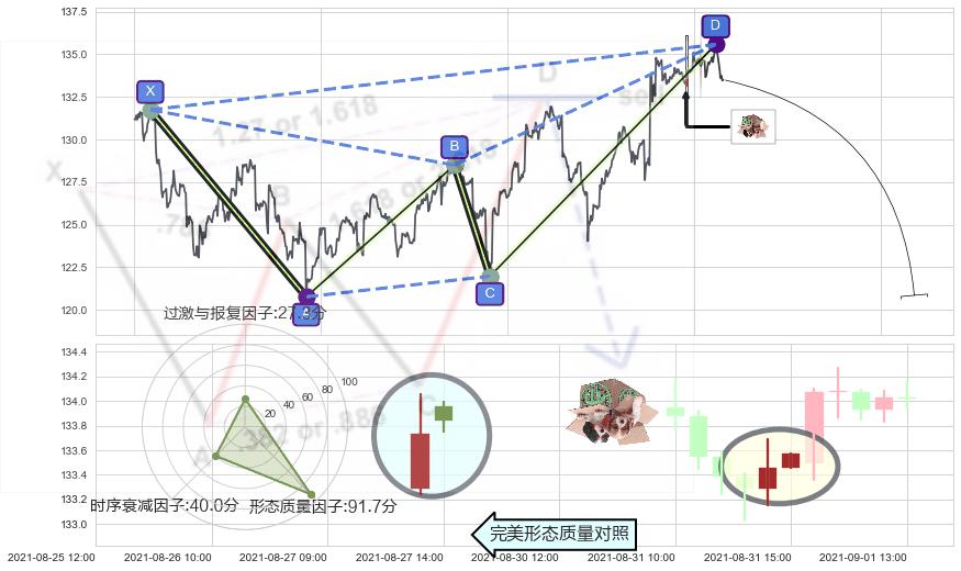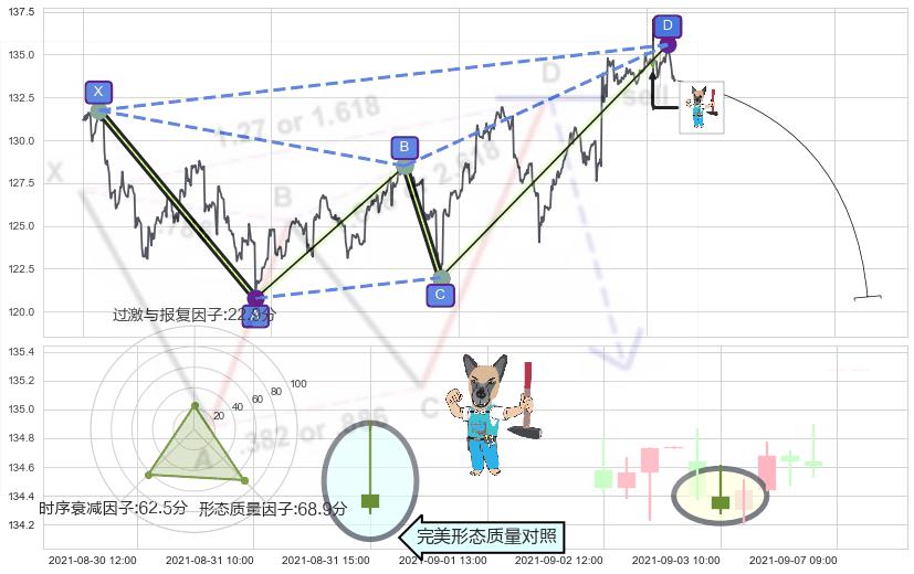➣ 谐波蝴蝶:已到达d点:猜想c拉升到达d点后泄力性下沉下跌(均值回复)