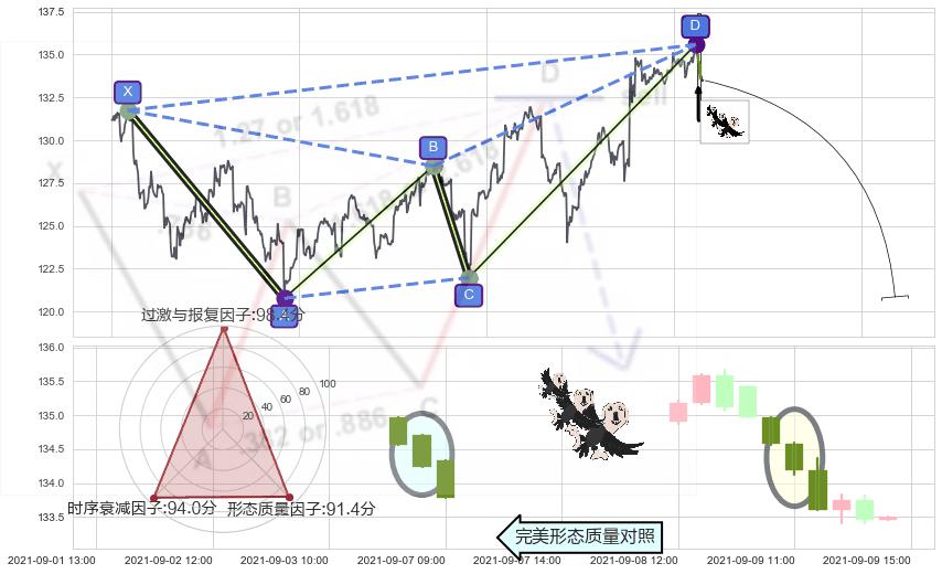 ➣ 已完成【蝴蝶】形态起点X: 05-03:10, 终点D: 09-08:13, 共607交易小时