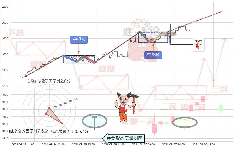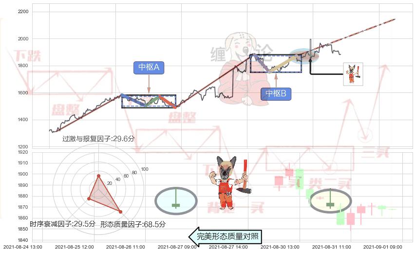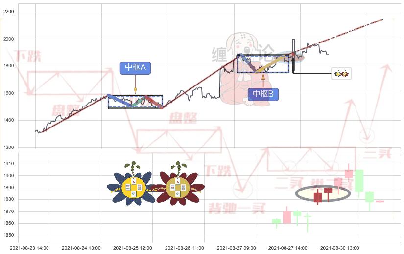 ➣ 【中枢B】:08-12:09-08-25:14,中枢由3笔构成,共65交易小时, ZG=1871.94, ZD=1750.60