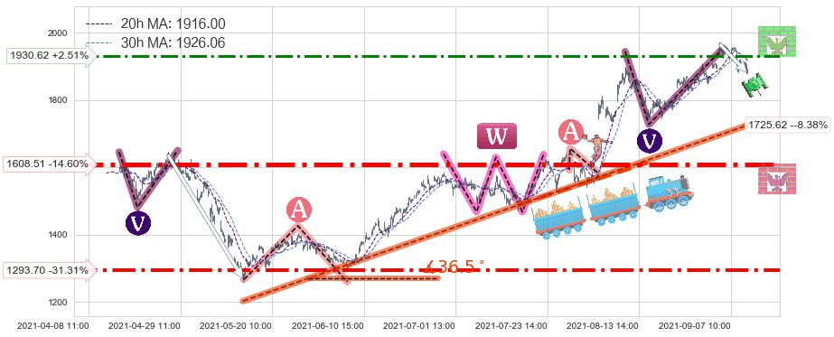 ♞ 20小时均线:1916.00,30小时均线:1926.06→ 快线<慢线