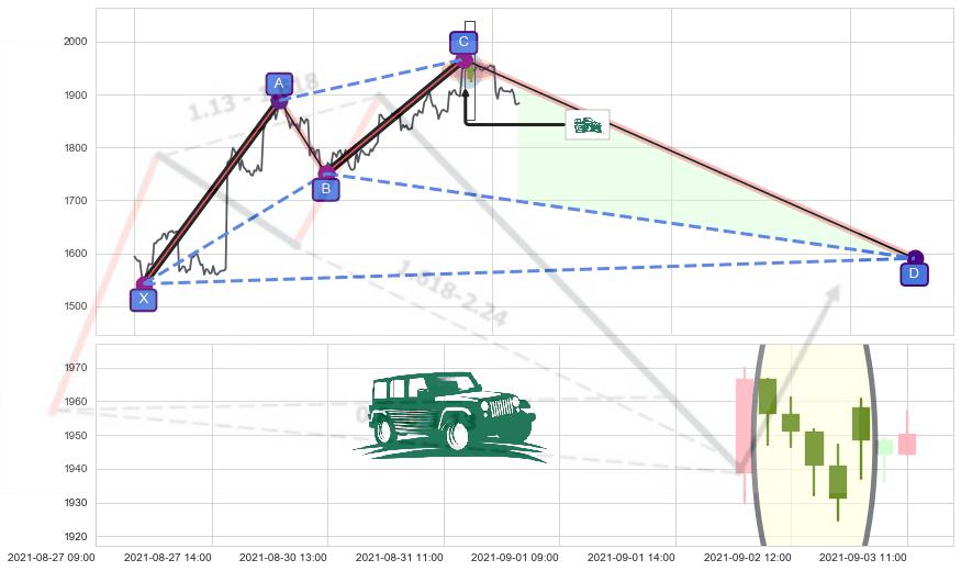 ➢ 未完成【鲨鱼】形态起点X: 07-27:10, 已到达C点: 09-02:10, 预测最终D点: 10-25:12, 共431交易小时