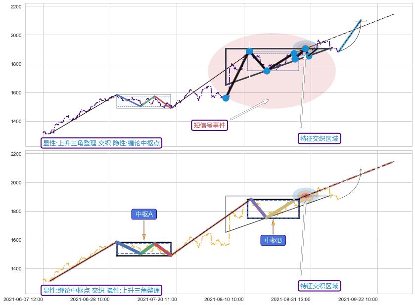 ➢ 上升三角整理属【短级别信号事件】缠论中枢点属【长级别信号事件】长短周期组合信号事件, 短长事件长度比31.94%
