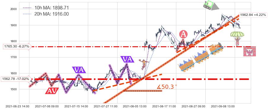♞ 10小时均线:1898.71,20小时均线:1916.00→ 快线<慢线