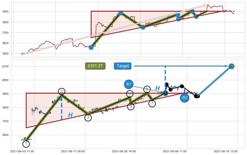 ➣ AI预测: 假定反转启动后, 第❶目标位置(11-01:13, 1734.04)