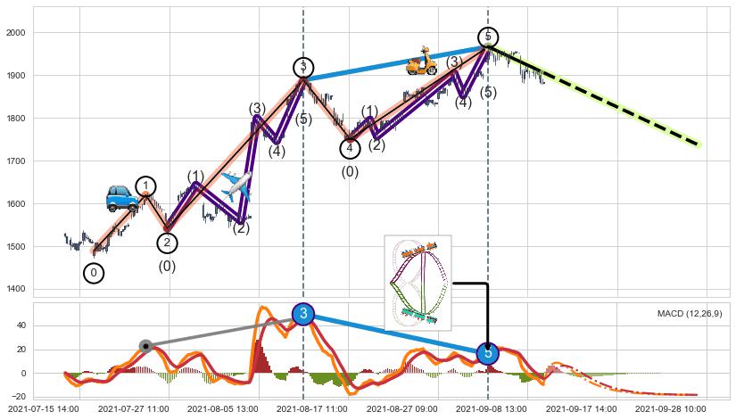 ➣ 波浪理论:猜想止涨 → 下跌 →【拐点】浪5已完成 → 大趋势均值回复