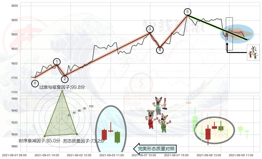 ➢ 🕰 价格走势在2021-09-09 09:00:00至2021-09-09 09:00:00期间形成单针探底(定海神针),残存影响值:6.92