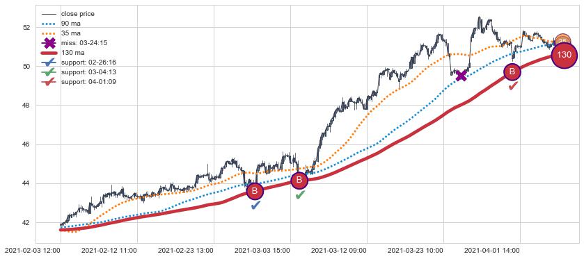 📝 多条均线形成死叉后走势最低价格达到: 50.46