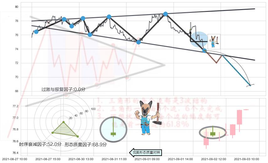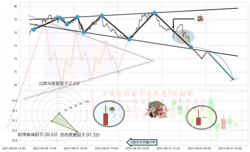 ➢ 顶部尽头线(下山虎) 🔜 扩散三角反转临近支撑猜想转换阻力下跌 综合量化分数:46.63 【中性】