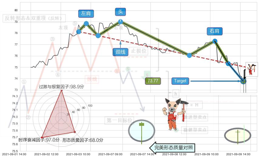 ➢ 【卖1】: 激进型 卖点→(09-08:09: 75.34 )形成突破头肩顶【反转】形态