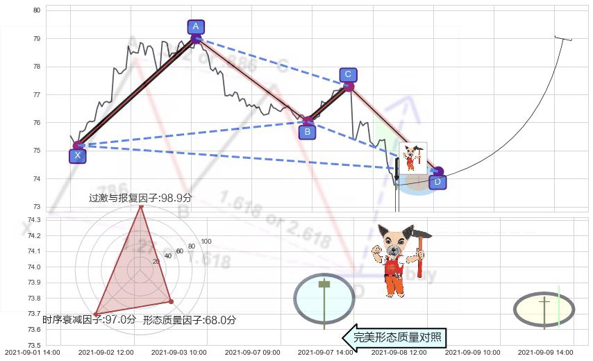➣ D点拟合预测价格74.25,距离最后交易收盘价格73.77相差 +0.65%