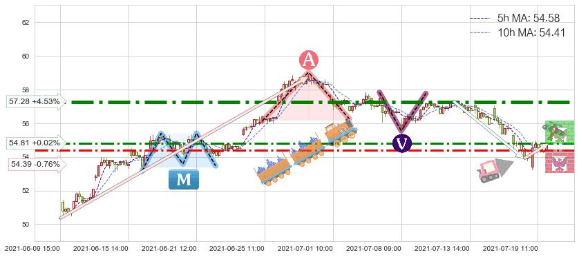 ♘ 阻力价格位54.81,可信任强度59.97%,距离最后交易2021-07-19 15:00形成的收盘价格54.80相差 +0.02%