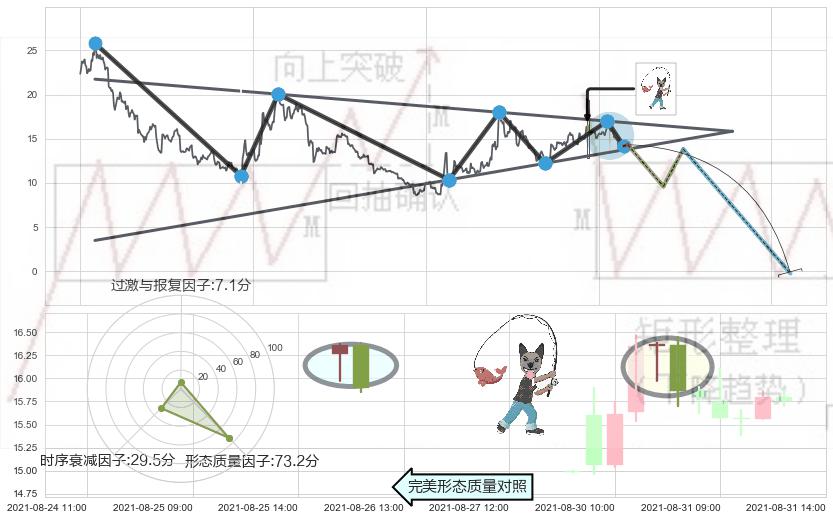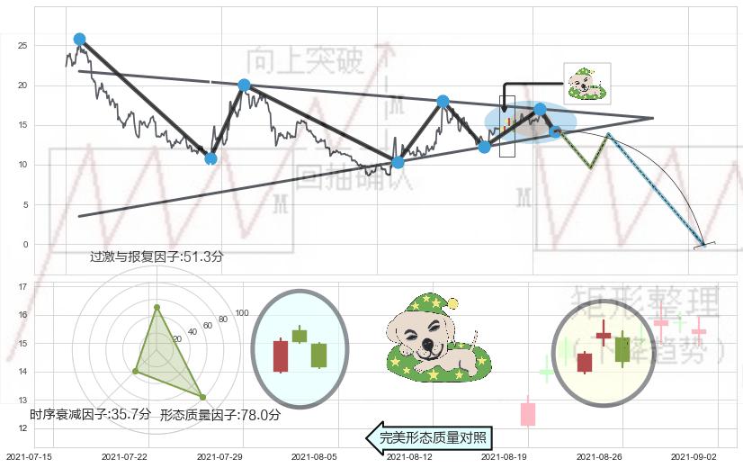 ➢ 升楔型支撑破位转换阻力下跌 🔜 下跌矩形整理临近支撑猜想转换阻力下跌 综合量化分数:35.01 【强烈看空】