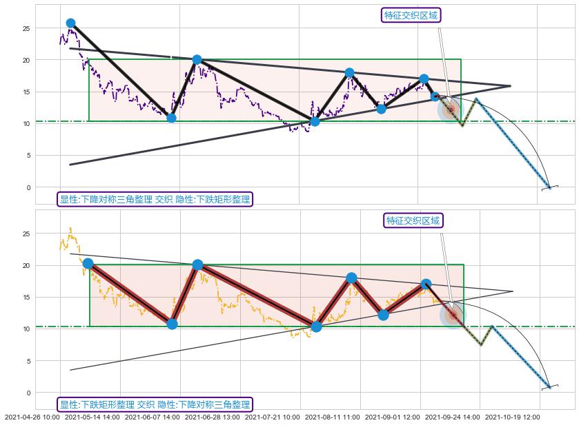 ➢ 下跌矩形整理临近支撑猜想转换阻力下跌 🔜 下降对称三角整理临近支撑猜想转换阻力下跌 综合量化分数:35.05 【强烈看空】