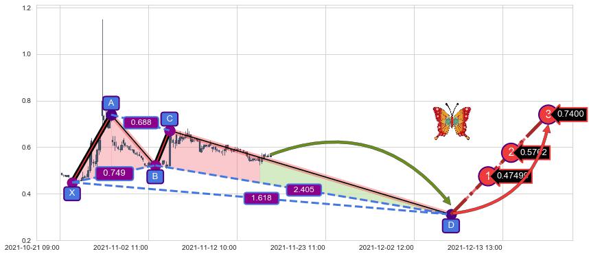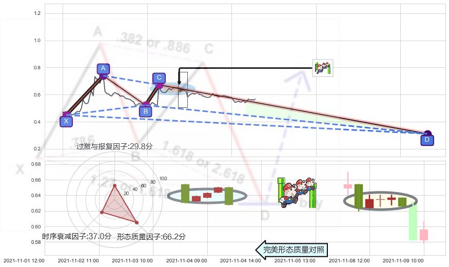 ➣ 未完成【蝴蝶】形态起点X: 10-22:10, 已到达C点: 11-04:11, 预测最终D点: 12-07:12, 共209交易小时