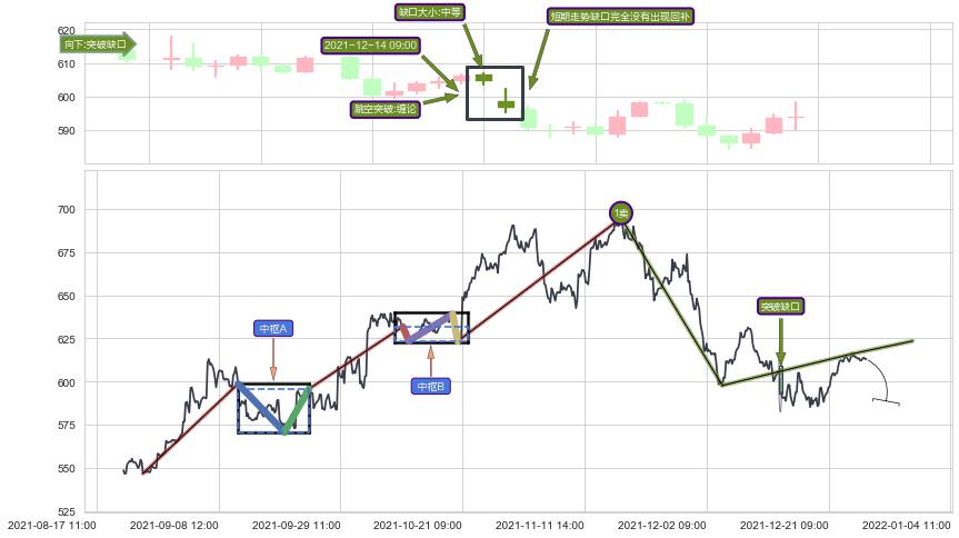 ➢ 2021-12-14 09:00形成:向下跳空【突破】缺口