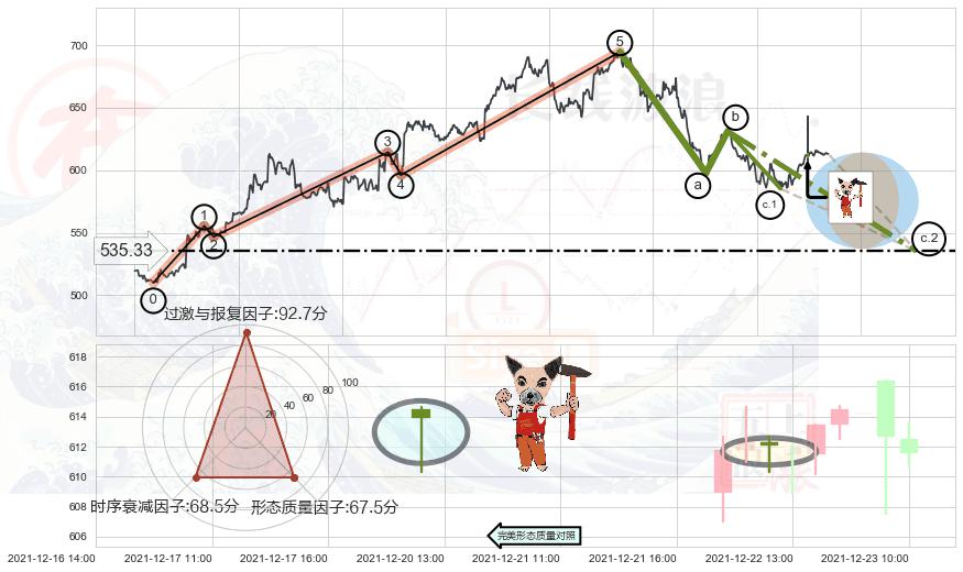 ➢ 🕰 价格走势在2021-12-23 09:00:00至2021-12-23 09:00:00期间形成单针探底(定海神针),残存影响值:7.27