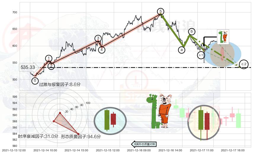 ➣ c.1: 当前c浪回调位置(12-17:09, 585.27),仍然有回调空间