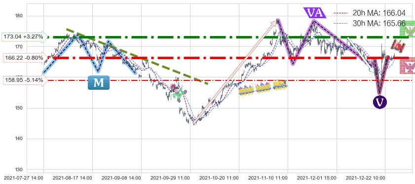 ♘ 阻力价格位173.04,可信任强度93.84%,距离最后交易2021-12-27 15:00形成的收盘价格167.56相差 +3.27%