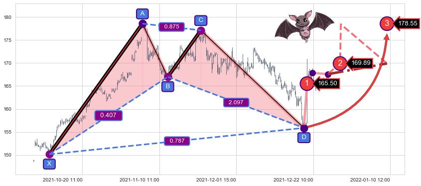 ➣ 已完成【蝙蝠】形态起点X: 10-11:14, 终点D: 12-20:12, 共332交易小时