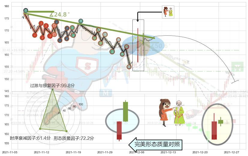 ♘ 阻力价格位173.43,可信任强度65.22%,距离最后交易2021-12-27 15:00形成的收盘价格167.56相差 +3.50%