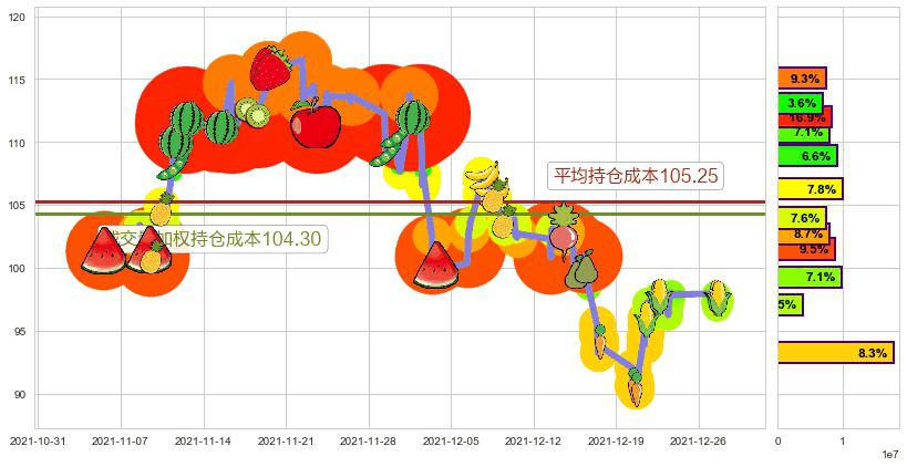 ⍷ 成交量加权持仓成本104.30→距最后价格 +7.04%