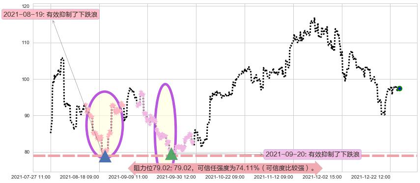 ♘ 支撑价格位79.02,可信任强度74.11%,距离最后交易2021-12-27 16:00形成的收盘价格97.44相差 -18.90%