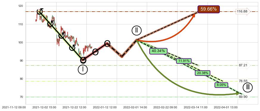 ♘ 阻力价格位115.77,可信任强度55.35%,距离最后交易2021-12-27 16:00形成的收盘价格97.44相差 +18.82%