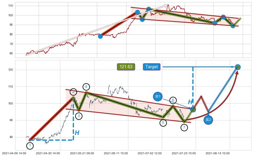 ➣ 最小中继整理涨幅→𝐇: 25.19 (𝐇旗杆的长度:旗杆起点→顶点)