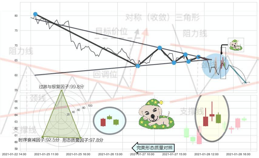 ➢ 下降【对称】三角形整理综合量化分数: 41.49 【强烈看空】