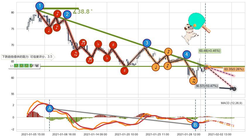 ♘ 阻力价格位68.50,可信任强度89.52%,距离最后交易2021-01-28 16:00形成的收盘价格63.19相差 +8.40%