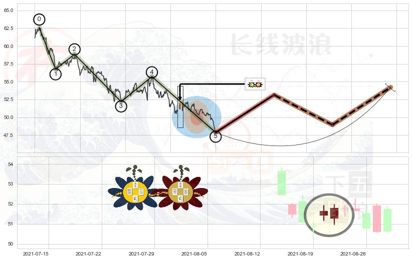 2021-08-06: 第一阻力位55.28强力阻拦了上升趋势,成功阻止了价格的继续上涨。