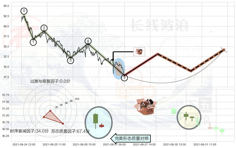 ➢ 阳包阴形态 🔜 波浪理论下跌浪:浪5反弹拐点 综合量化分数:53.58 【中性】