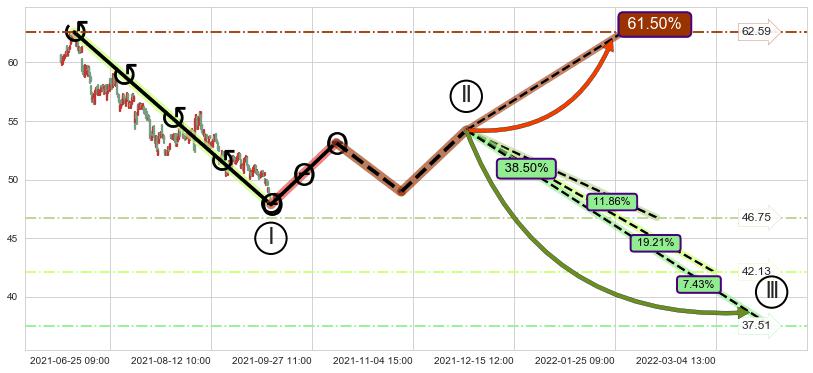 ➢ 高概率大级别循环下跌浪被破坏,反转向上(突破5浪起点)概率61.50%