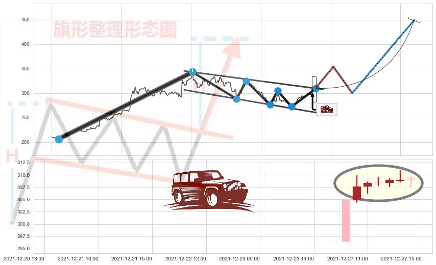 ➣ 【未确认突破,预测即将形成突破】降⚑旗形起点:10-12:12, 预测突破点:12-28:09,形态共371交易小时