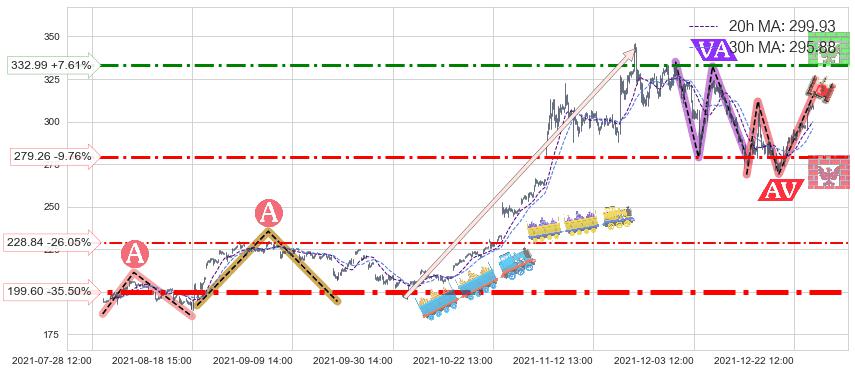 ♘ 阻力价格位332.99,可信任强度62.65%,距离最后交易2021-12-27 15:00形成的收盘价格309.45相差 +7.61%