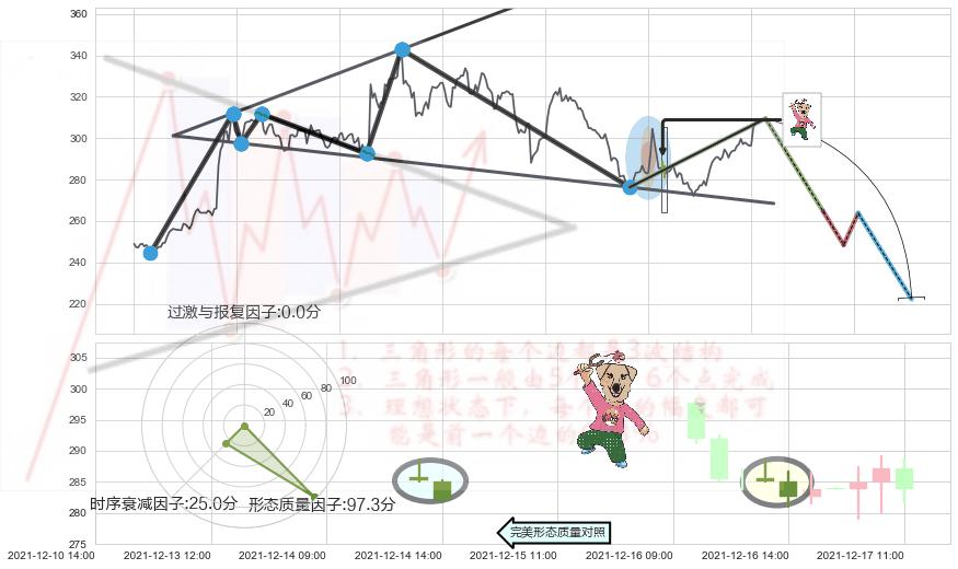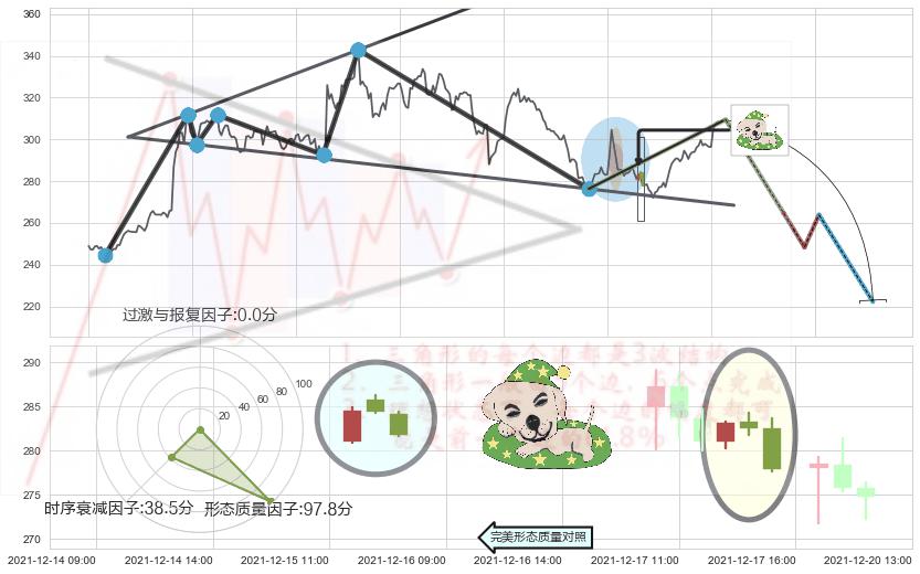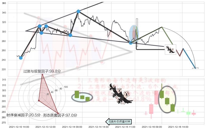 ➢ 🕰 价格走势在2021-12-16 15:00:00至2021-12-16 16:00:00期间形成顶部尽头线(下山虎),残存影响值:-1.95
