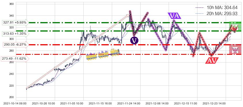 ♘ 阻力价格位327.81,可信任强度81.14%,距离最后交易2021-12-27 15:00形成的收盘价格309.45相差 +5.93%