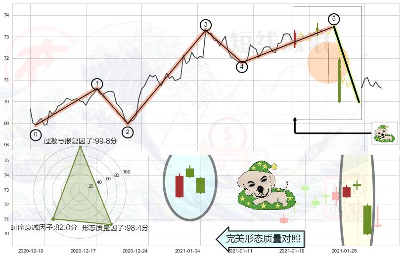 ➢ 🕰 价格走势在2021-01-25 00:00:00至2021-01-27 00:00:00期间形成黄昏之星(夜星),残存影响值:-3.32