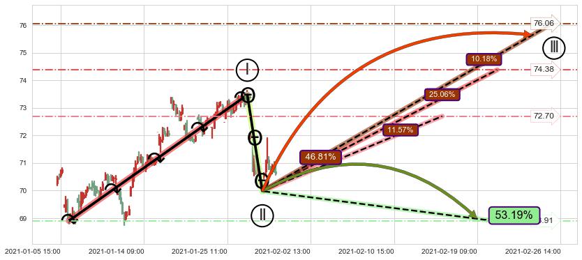 ➢ 循环浪继续向上【最低】位置(02-16:12, 72.70),匹配聚类样本比例24.71%, 可能性概率11.57%