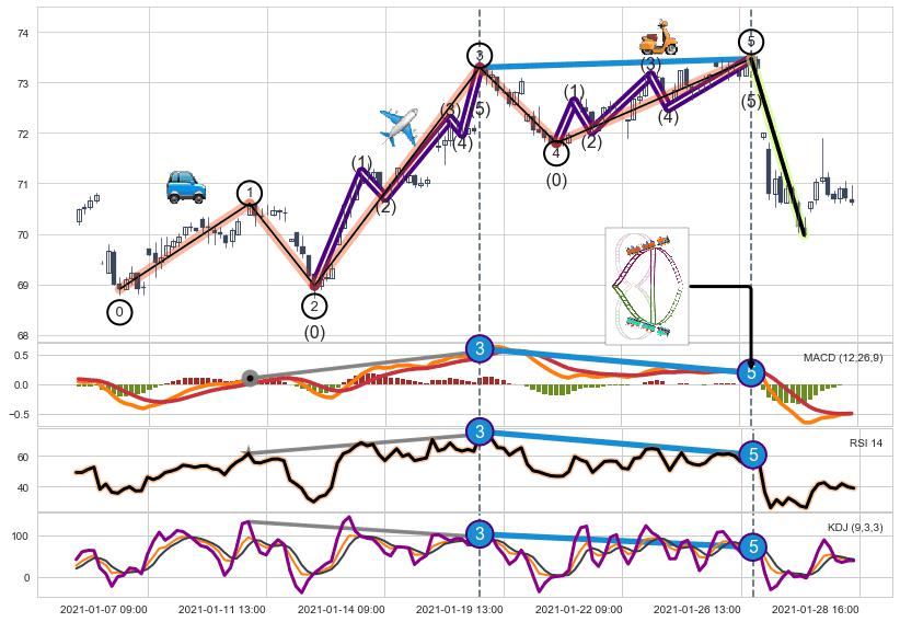 ➣ 第三,五驱动浪端点:【KDJ】走势出现【常规背离 & 反转信号】背离程度99.00%,背离夹角角度12.5˚,背离程度较大