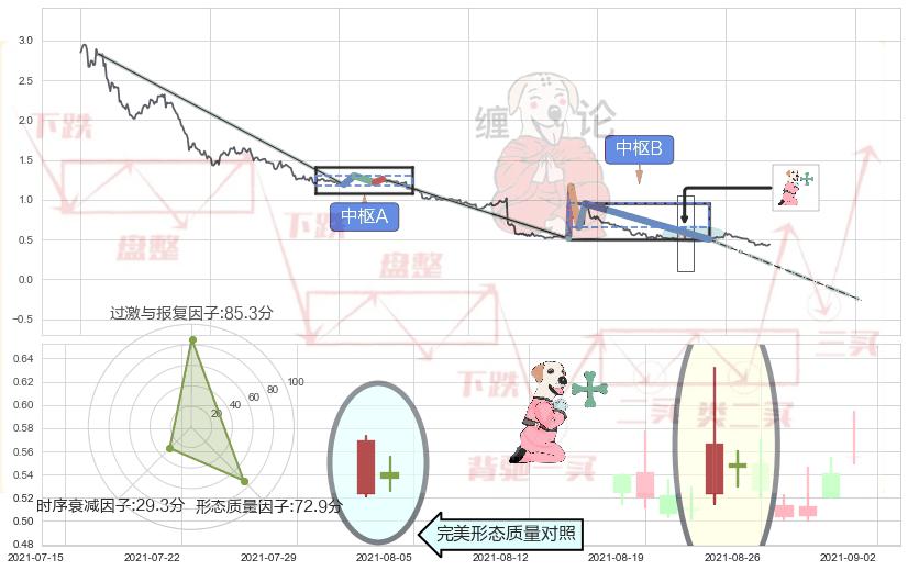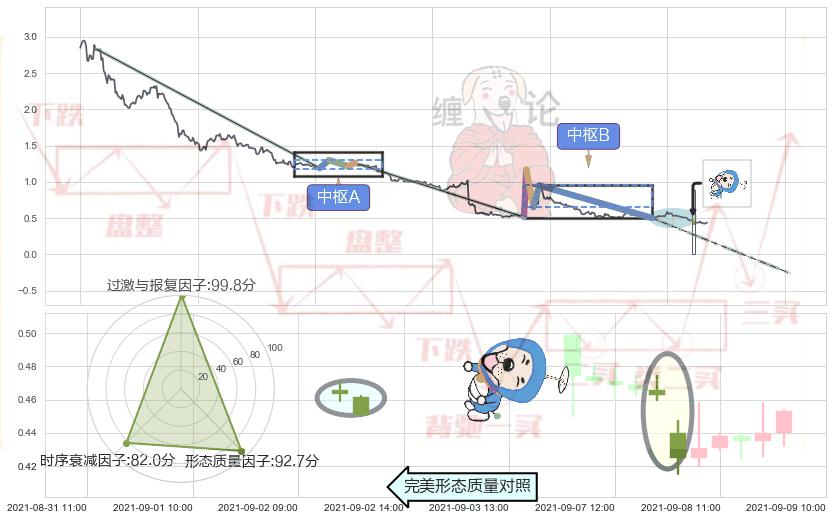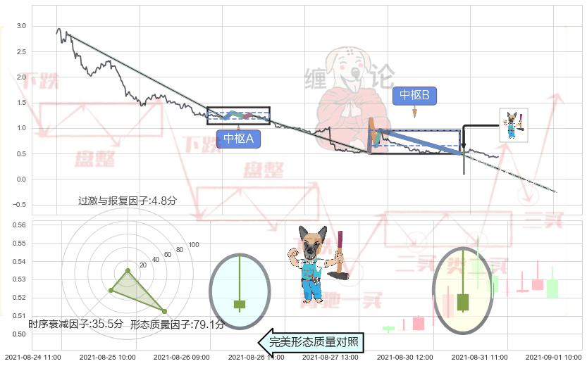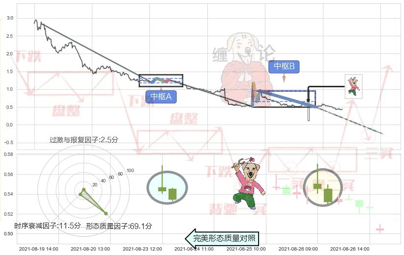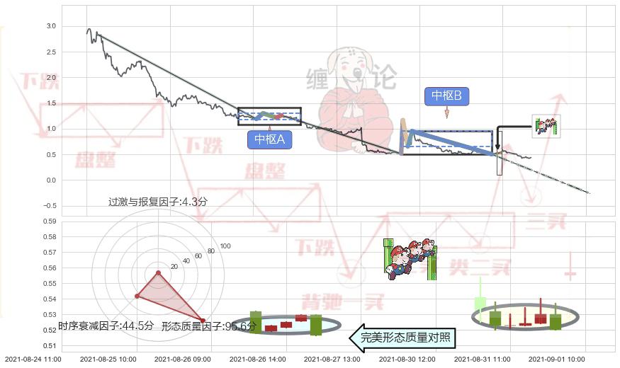➣ 下跌螺旋桨 + 缠论中枢点破位中枢B支撑下拉信号叠加后【信号初始稳固度】低,【看空】信号叠加【可信度影响小】