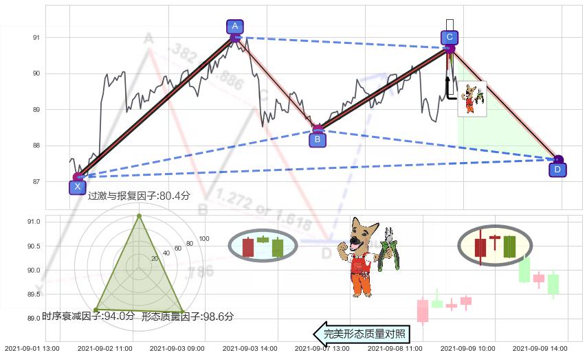 ➣ BC回撤位置在AB的88.2%,符合形态要求